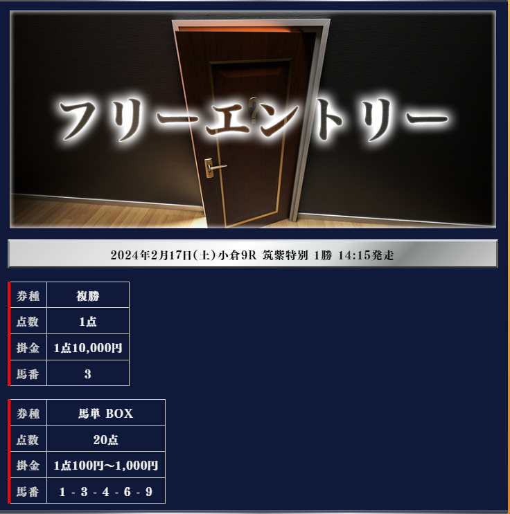 | 的中率 | 回収率 | 無料予想 | 有料予想 | 高配当 |