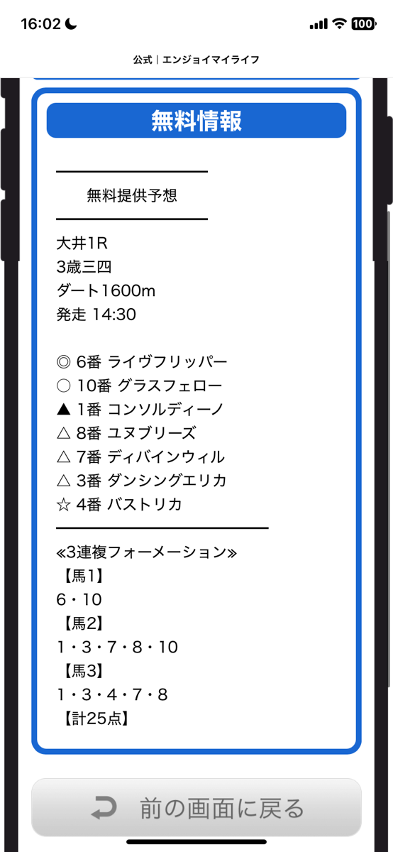 今日も無料予想もらえちゃいますよ?