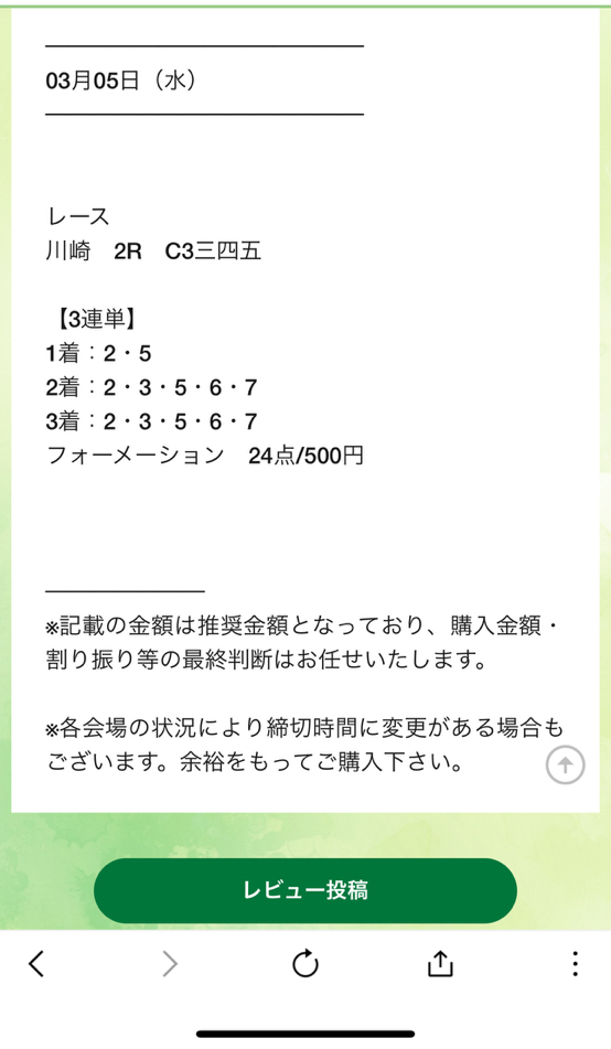 ここをタップすると当日のおすすめ無料予想が教えてもらえるのですが