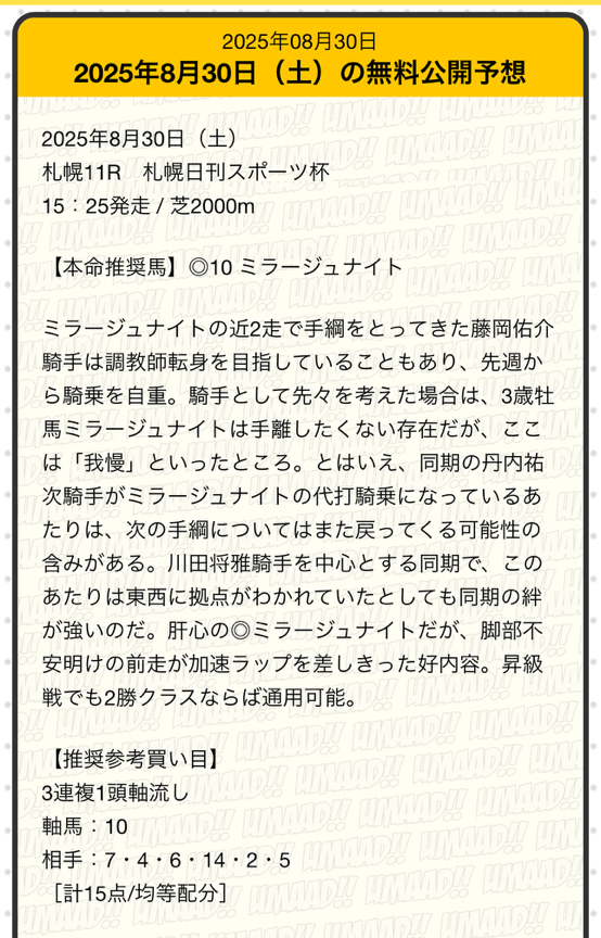 結構いい配当を手に入れられたし、ほかのサイトが無料予想で的中出来なかった