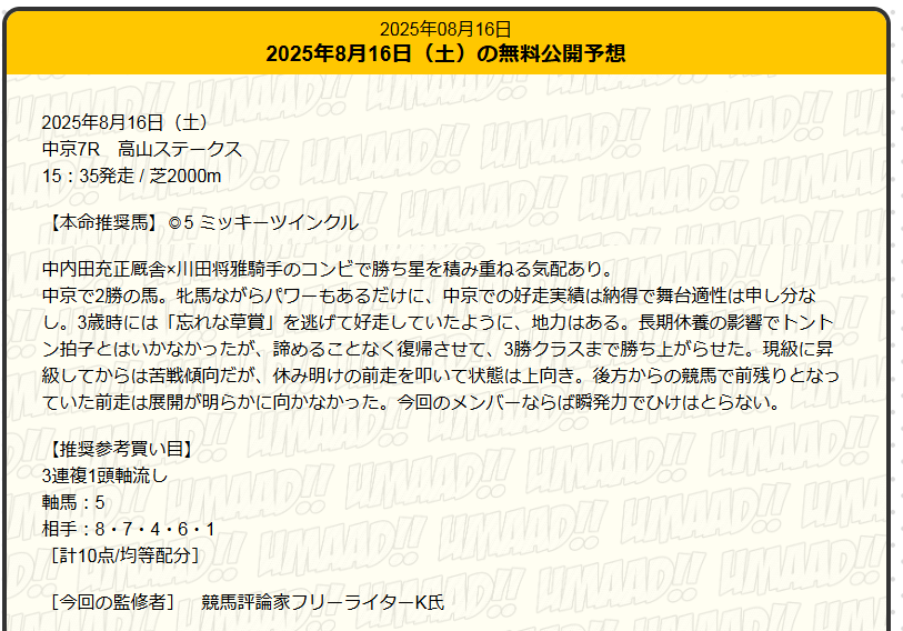 大日本馬帝国管理人もメルマガでオススメしてた!